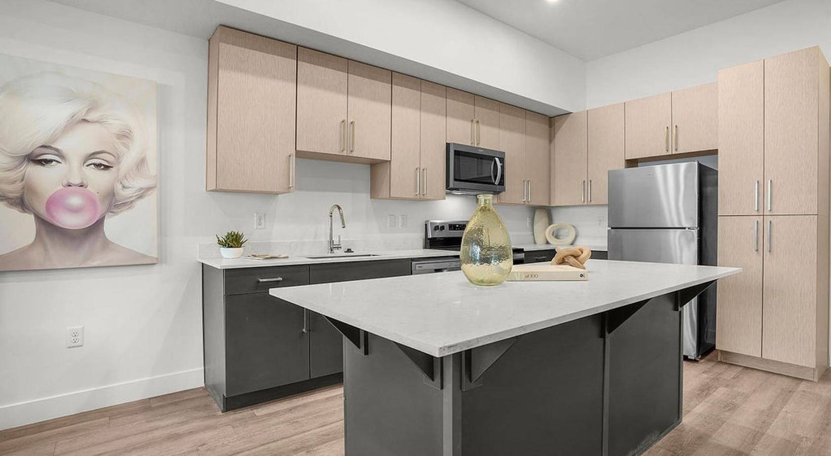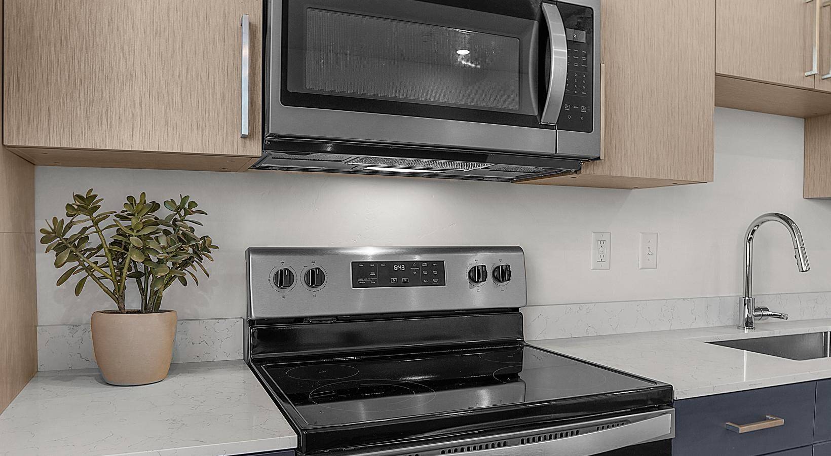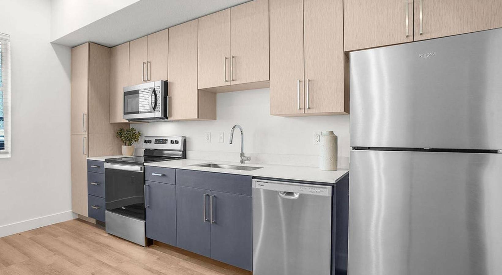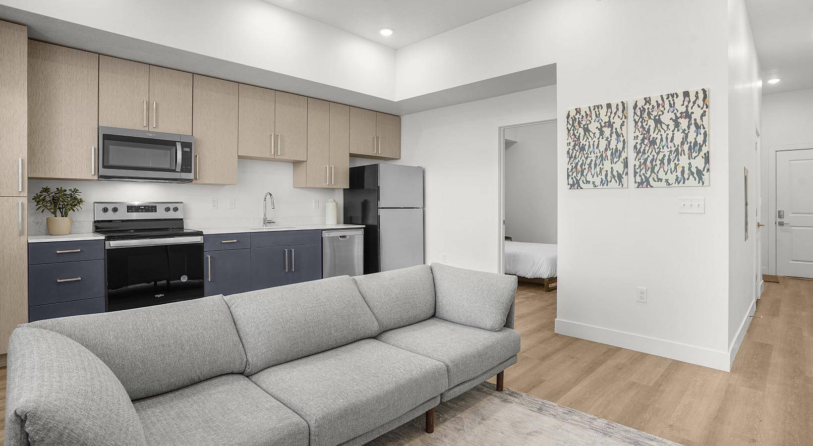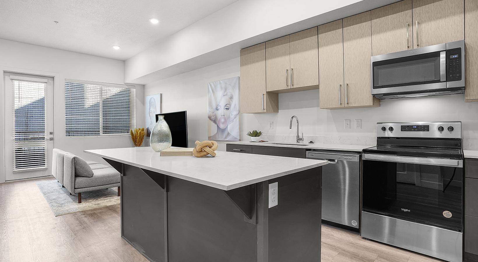 For this project, SCS Multifamily supplied the cabinetry and quartz countertops that give each unit a clean, cohesive look. Our goal was simple: create finishes that feel elevated, hold up to everyday living and complement the thoughtful design throughout the building.
