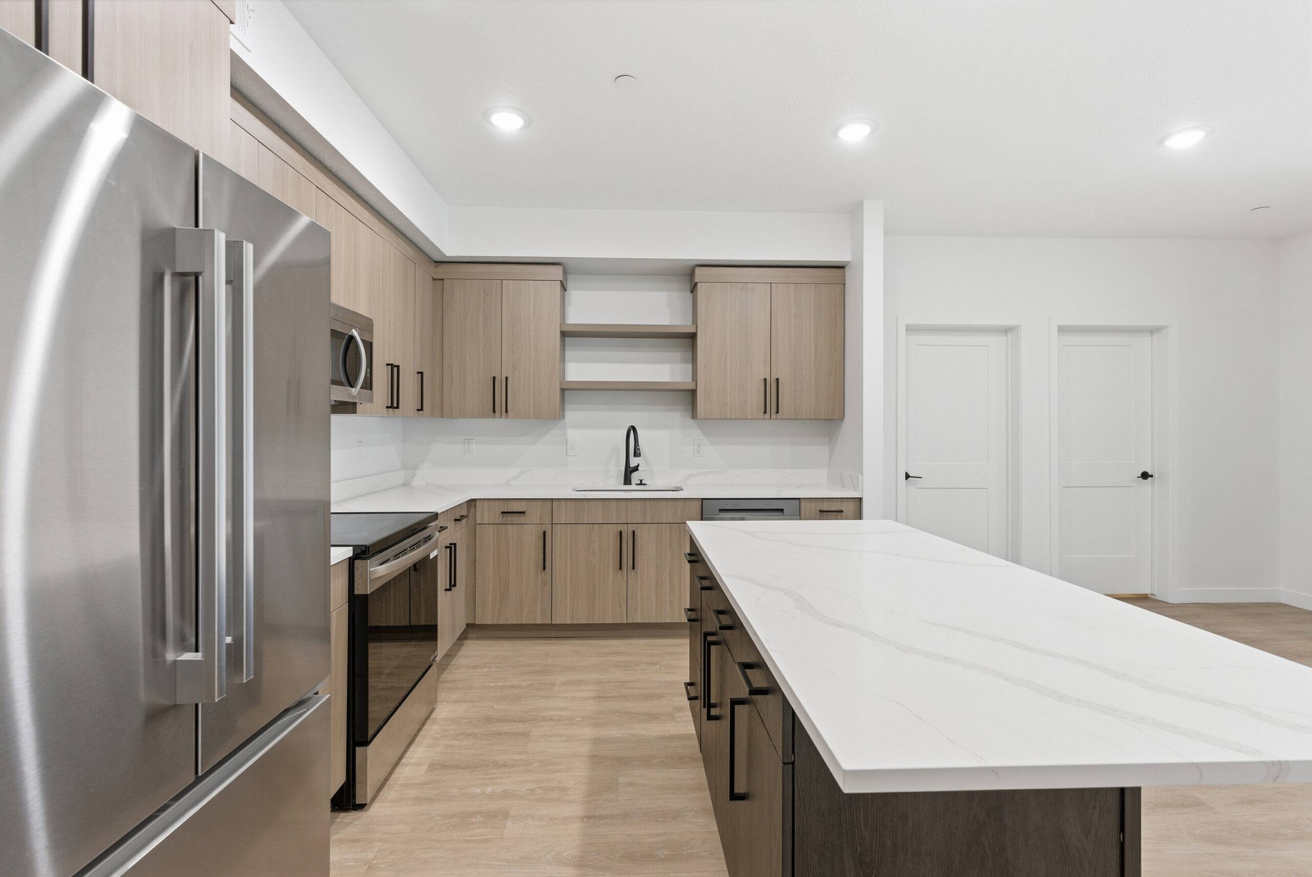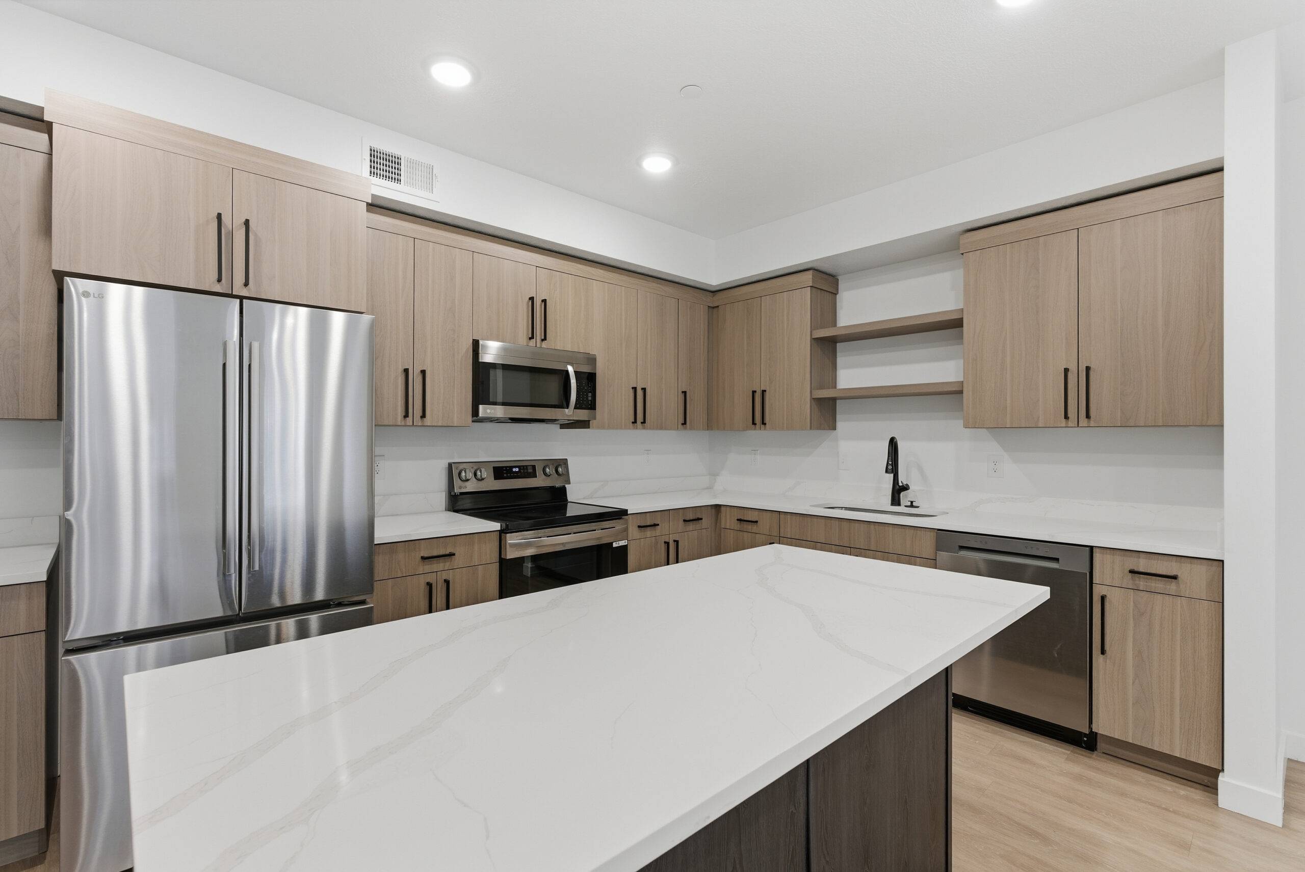Brigham Lofts, located in Brigham City, Utah, is a 165-unit multifamily project that required a streamlined approach to cabinetry and countertop installation while maintaining design consistency and build quality across all units.