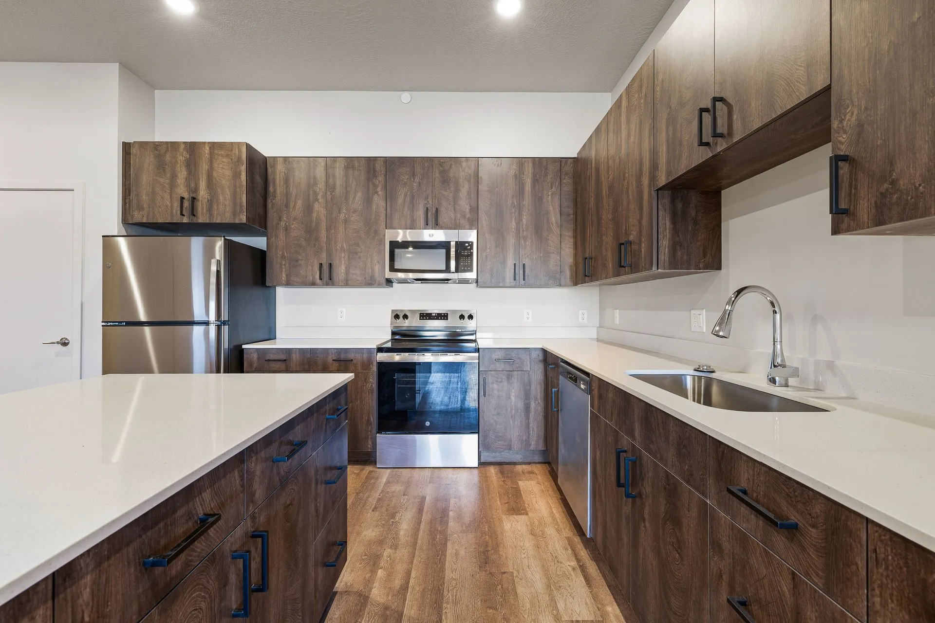 At SCS Multifamily we supplied cabinetry and quartz countertops throughout the development. Our materials and installation approach helped ensure each unit met the high standards expected for quality, durability and modern living.