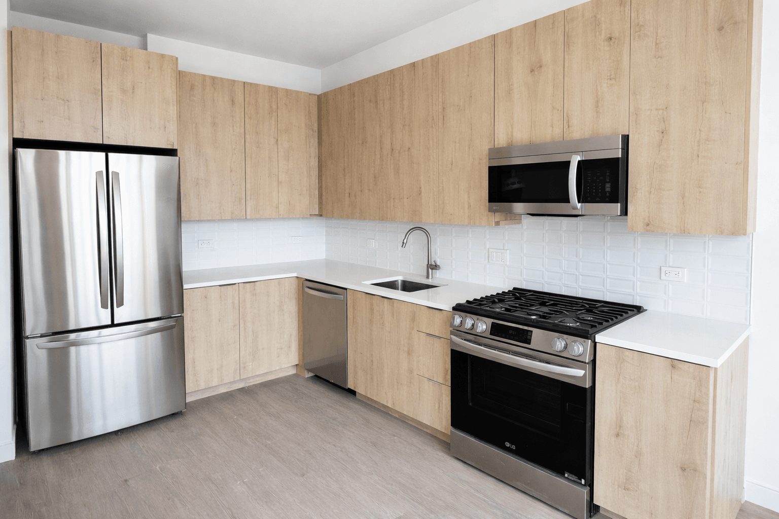 SCS Multifamily worked closely with Power Construction and project stakeholders to proactively address on-site conditions and evolving design requirements. Installation plans were adjusted to account for floor variances, and design updates were incorporated efficiently without disrupting workflow. Experienced in-house teams and clear communication helped maintain quality and consistency across all units.